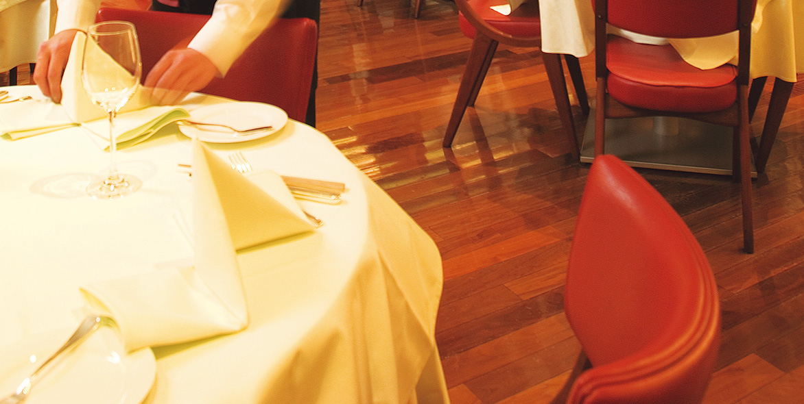 We offer an extensive lineup of products for use in various situations. Take our table linens, for example. In addition to our popular cotton tablecloths, we can also supply other materials such as elaborately designed polyesters that are perfect for weddings. We also offer kitchen and floor staff uniforms of every description, and even dusters to meet customers' needs.