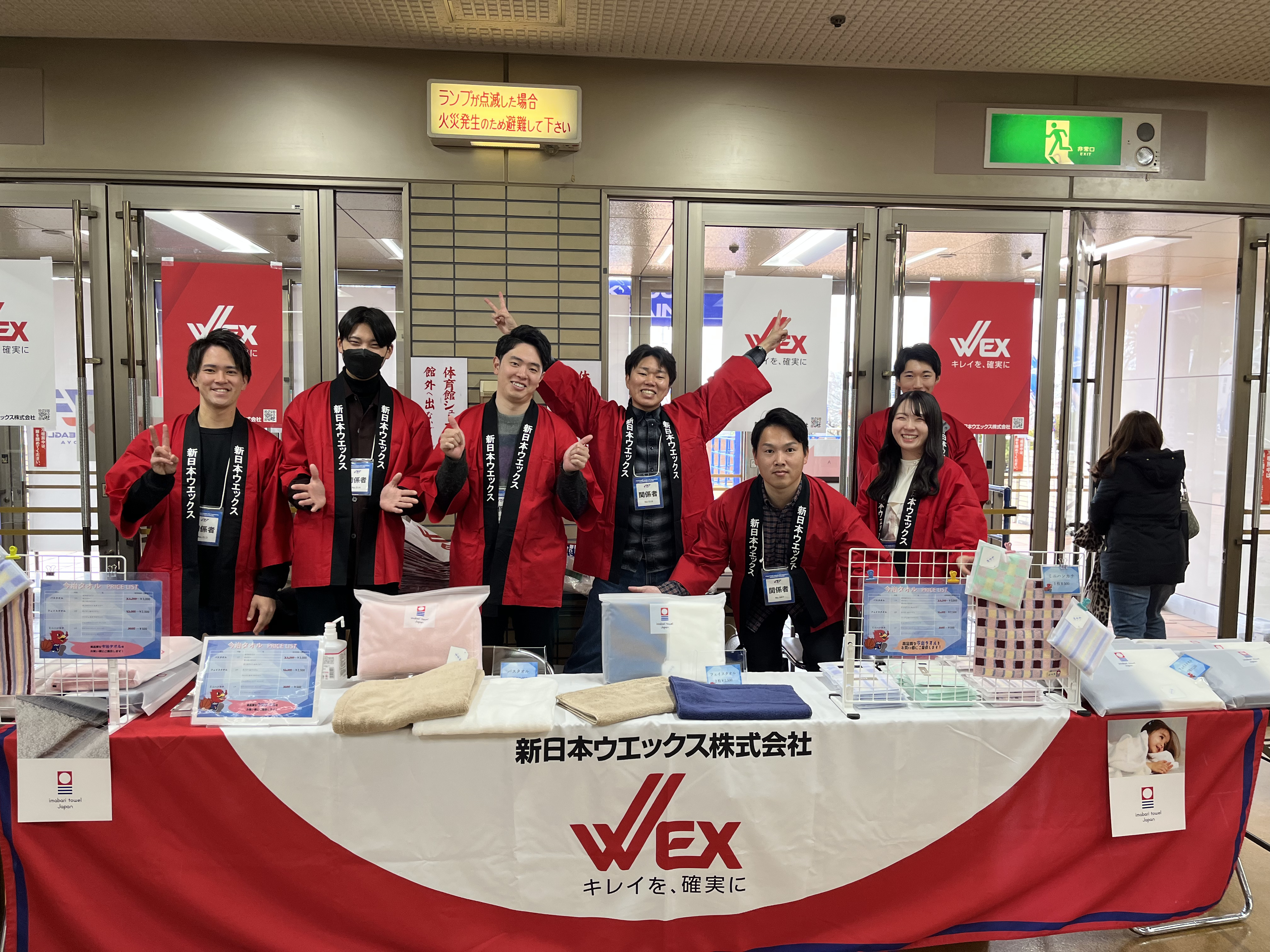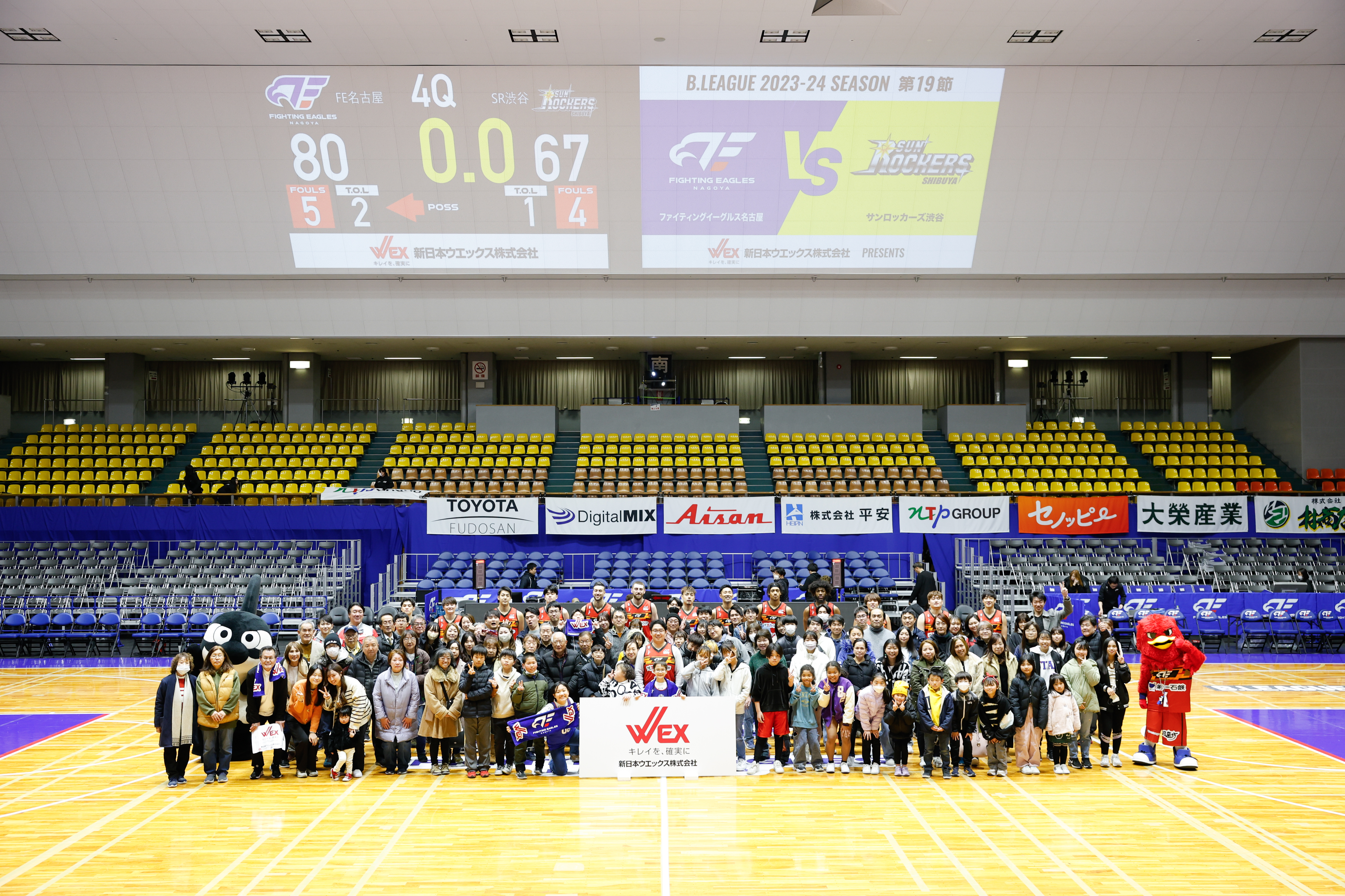 1月28日(日)、ファイティングイーグルス名古屋のプラチナムスポンサーとして新日本ウエックス株式会社の名前を冠した試合が、名古屋市枇杷島スポーツセンターで行われました。当社からは従業員と家族、近隣地域の方々、またお取引先の皆様にも参加いただきました。当社の物販ブースを出店し、今治タオル販売を行いました。今回はバスケ教室やフリースロー大会も開催し大変盛り上がりました。熱い試合を繰り広げ、結果は見事勝利を収めました。選手の皆様、感動をありがとうございました。